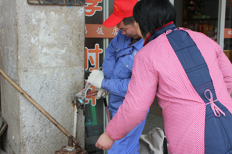 圖為集團(tuán)志愿者為濱海鏡海社區(qū)居民上門免費(fèi)維修水管