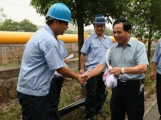 圖為集團單總經理慰問紹興水處理公司機修員工