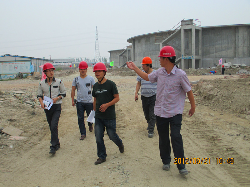 圖為現(xiàn)場(chǎng)檢查濱海印染產(chǎn)業(yè)集聚區(qū)污水集中預(yù)處理工地