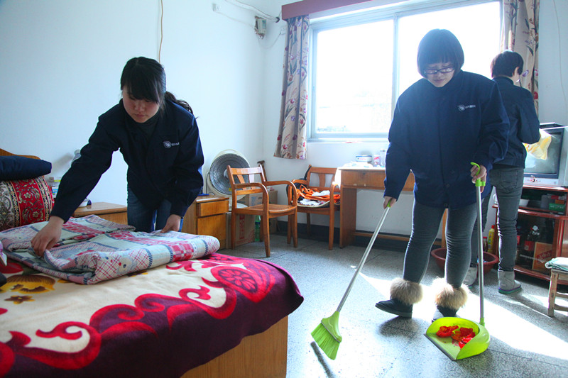 志愿者為夕陽紅敬老院老人打掃衛(wèi)生