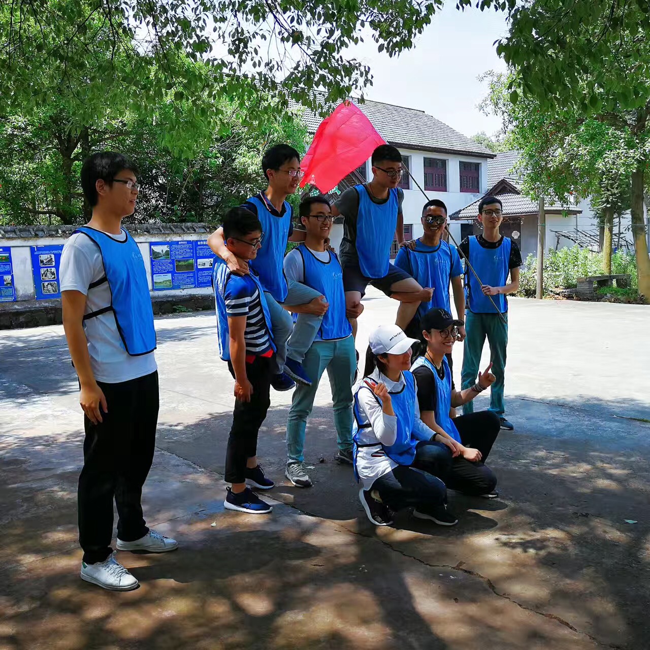 活動(dòng)中,參加人員被隨機(jī)分為四隊(duì),通過各小組集體討論,確定了各自的隊(duì)名、隊(duì)旗、隊(duì)標(biāo)、隊(duì)歌、口號(hào)等。經(jīng)教練針對(duì)性的啟發(fā)和點(diǎn)評(píng),較圓滿的達(dá)到了挑戰(zhàn)自我、凝聚團(tuán)隊(duì)的培訓(xùn)目的。
