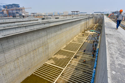 投資5億元的20萬噸/日集中預(yù)處理二期工程自2017年4月動(dòng)工以來,目前全面進(jìn)入設(shè)備安裝階段。期間,實(shí)行每周制定施工計(jì)劃、每周督查制,現(xiàn)設(shè)備安裝進(jìn)度良好,至2018年3月中旬,鼓風(fēng)機(jī)、吸刮泥機(jī)等關(guān)鍵設(shè)備安裝到位,完成安裝工程量的60%以上,預(yù)計(jì)4月底可安裝完畢,5月底完成設(shè)備單、聯(lián)動(dòng)調(diào)試,6月底如期投運(yùn),形成集聚區(qū)40萬噸/日集中預(yù)處理能力,屆時(shí)可全面滿足集聚區(qū)一、二、三期60家企業(yè)約35萬噸/日的污水排放需求。
